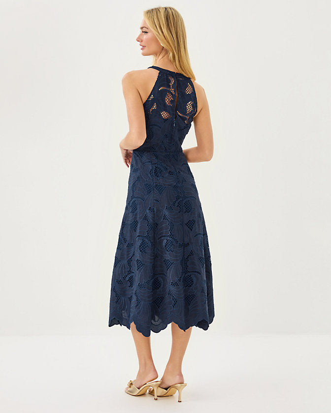 Denise Lace Halter Midi Dress - Low Tide Navy Sway With Me Scalloped Lace