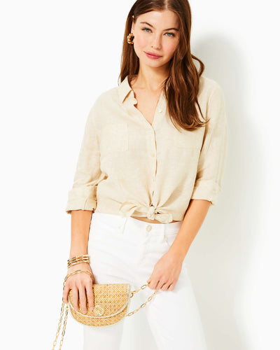 Sea View Linen Button Down Top - Sand Bar X Resort White