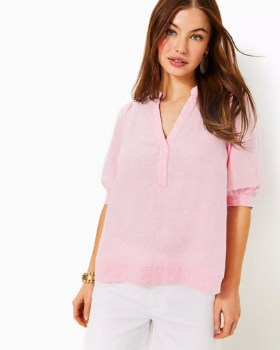 Mialeigh Linen Top - Conch Shell Pink X Resort White